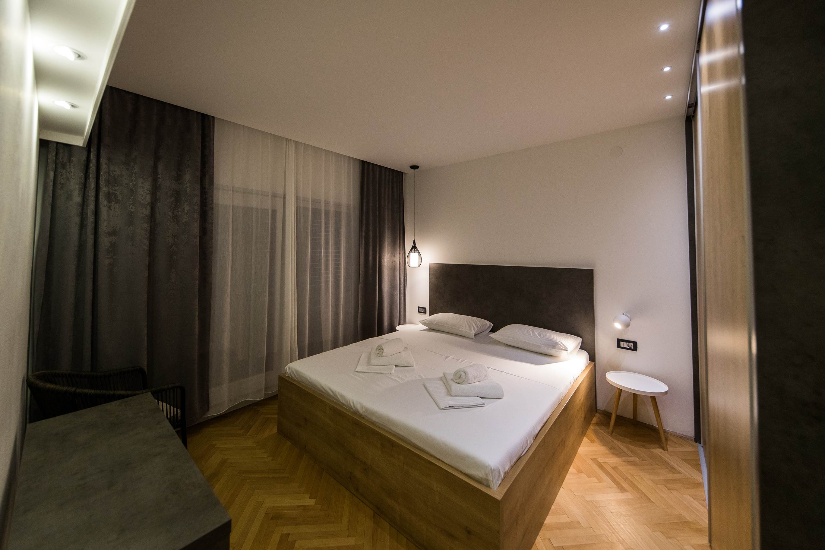 Ovaj apartman idealan je za do četiri osobe. Smješten na sunčanoj južnoj strani prizemlja, ima terasu s pogledom na vrt i bazen. Apartman je veličine 40 m², s dodatnom terasom od 15 m². Opremljen je potpuno opremljenom kuhinjom, klimatizacijom, novim namještajem, TV/SAT-om i besplatnim Wi-Fi-jem. Parking je dostupan ispred kuće. Glavna pješčana plaža, Crni Mol, udaljena je samo 60 metara. U krugu od 100 metara nalaze se pekarnica, trgovina, kiosk, restorani i mnoge opcije za dječje aktivnosti i rekreaciju. Centar Crikvenice udaljen je samo 10 minuta hoda uz obalnu šetnicu.
